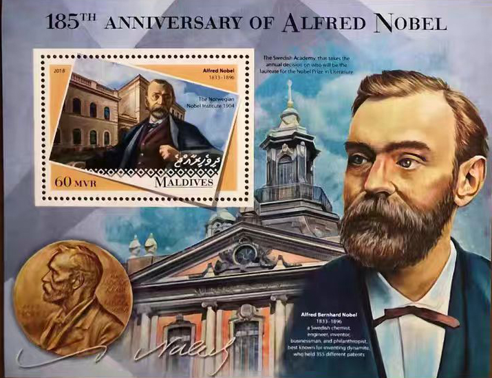 马尔代夫2018年诺贝尔奖设立者诺贝尔诞辰185周年邮票小型张