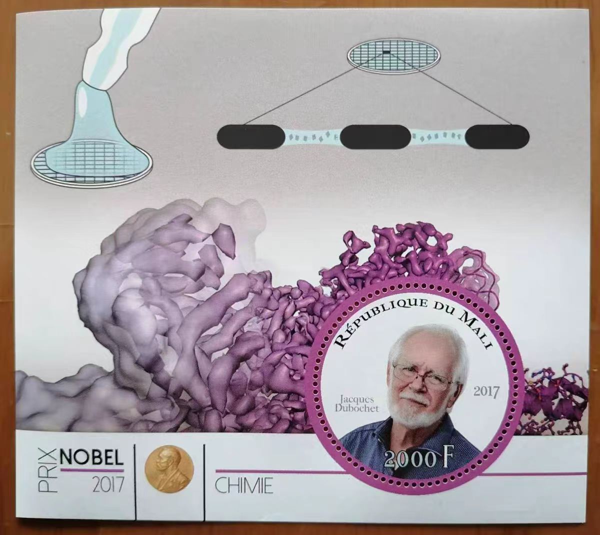 马里2017年诺贝尔化学奖获得者雅克.杜波切特园形邮票小型张
