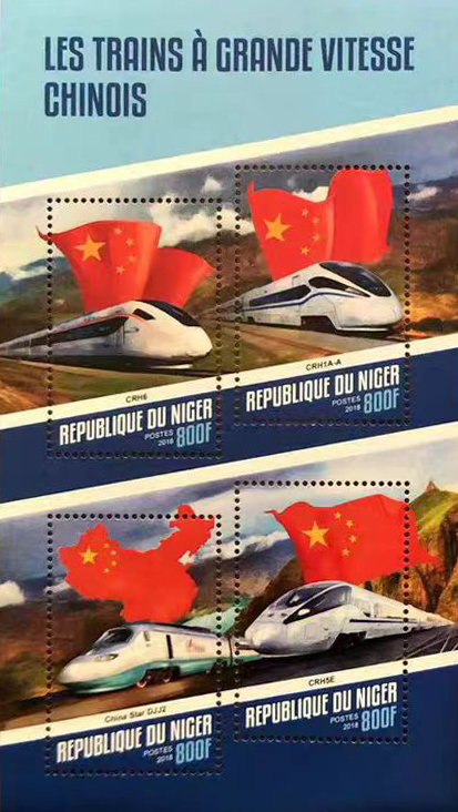 尼日尔2018年中国高铁(高速列车)邮票小全张(含4票)有中国国旗