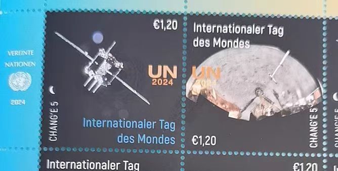 联合国2024年7月20日国际月球日发行中国航天嫦娥5号邮票2全