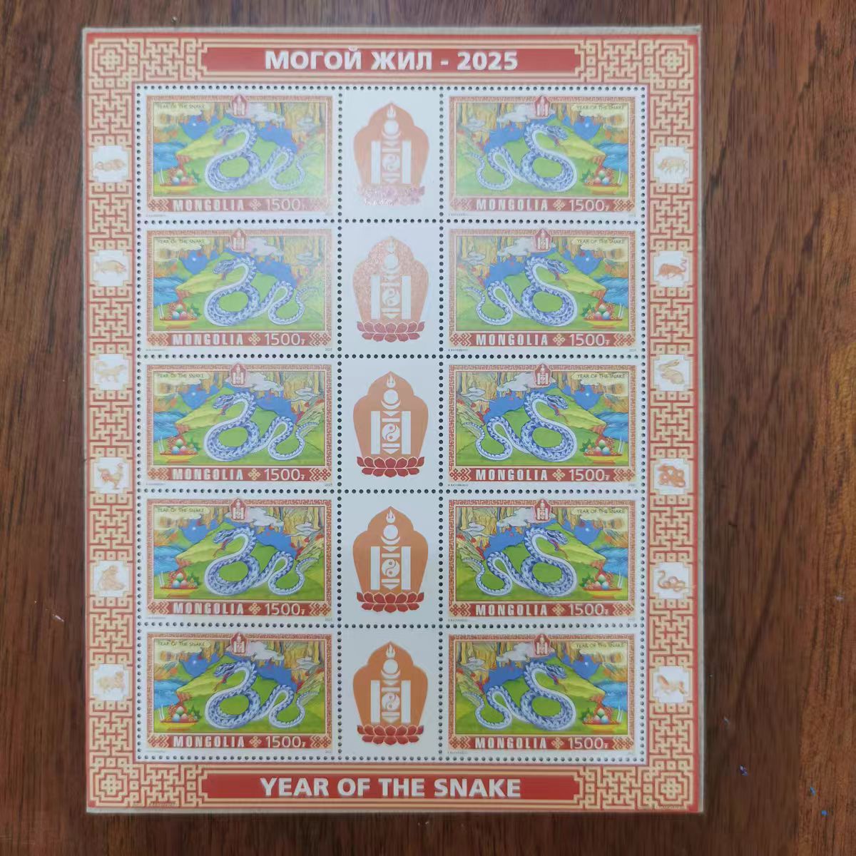 蒙古2025年生肖蛇邮票2全小版张中间过桥每版5套