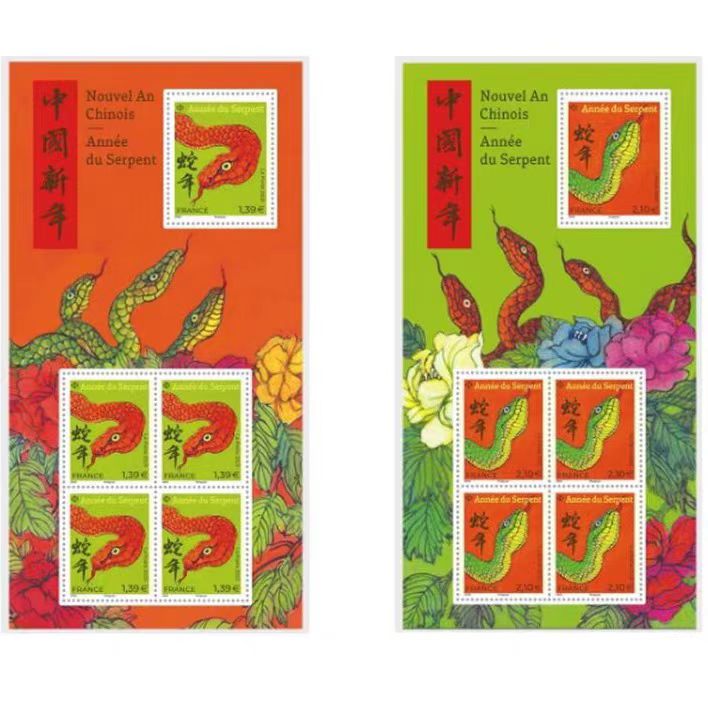 法国2025年生肖蛇邮票小版张2全有汉字¨中国新年