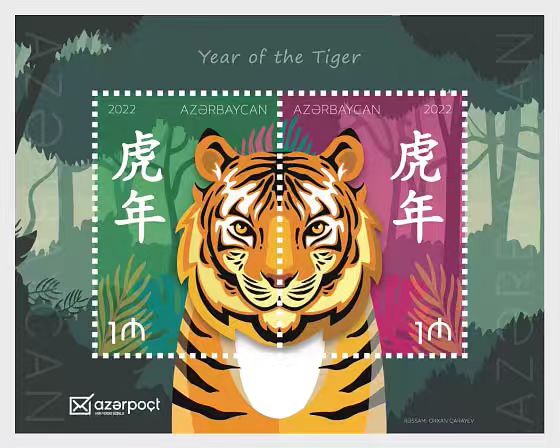 阿塞拜疆2022年生肖虎小全张含2票