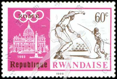Sc#268 墨西哥城第19届奥运会,击剑和60罗马字样60c (6-3) 1枚