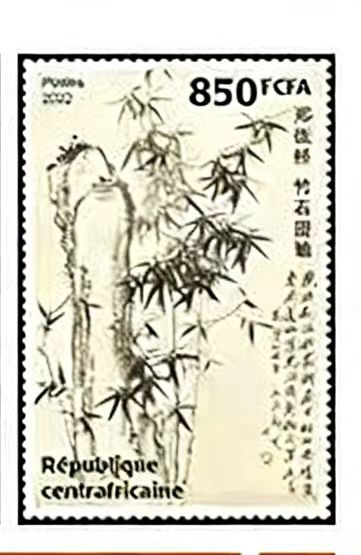 中非2022年非洲6国联合发行中国书画名家郑板桥《竹石图轴》邮票1全