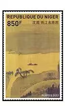 尼日尔2022年非洲6国联合发行中国书画名家沈周《雨江名胜图》邮票1全