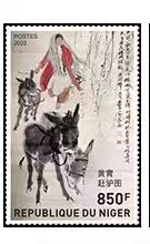 尼日尔2022年非洲6国联合发行中国书画名家黄冑《赶驴图》邮票1全