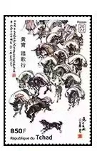 乍得2022年非洲6国联合发行中国书画名家黄冑《踏歌行》邮票1全