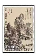 吉布堤2022年非洲6国联合发行中国书画名家黄宾虹《春日山水图》邮票1全