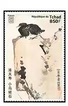 乍得2022年非洲6国联合发行中国书画名家潘天寿《小鸟顽石》邮票1全