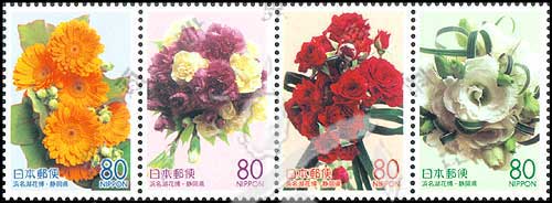 日本故乡邮票—2004日本浜名湖国际园艺花卉博览会,花卉4联(我社已售缺)